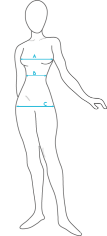 Cadera (C): Coloque la cinta métrica horizontalmente sobre la parte más sobresaliente de su cadera.
